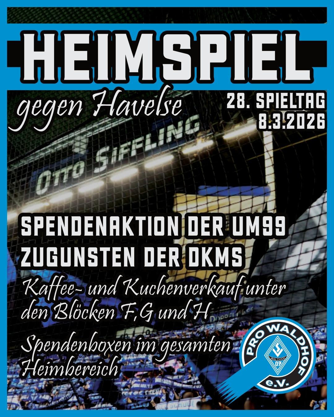 Die Ultras Mannheim sammeln wieder haltbare Lebensmittel für die Vesperkirche, diese können bereits vor dem Spiel ab 11 Uhr an der Baracke abgegeben werden. Zudem stellt PRO Waldhof eine Tombola auf die Beine, der Erlös wird dem Förderverein der Waldhof-Grundschule zugute kommen.